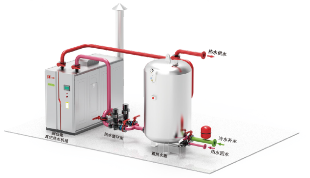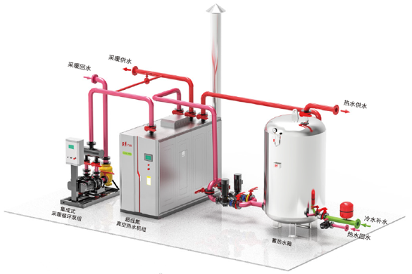 5001拉斯維加斯微壓相變熱水鍋爐主要由鍋爐本體和換熱器二部分組成,通過真空泵抽氣后形成一個(gè)密閉腔。運(yùn)行時(shí),密閉腔(鍋)內(nèi)工作壓力微正壓(不大于0.1MPa),熱媒水充注在密閉腔(鍋)內(nèi),燃料燃燒后傳熱給熱媒水,熱媒水吸熱后沸騰蒸發(fā)變成蒸汽,蒸汽上升到換熱器管外遇冷凝結(jié)放熱將熱量傳遞給上部換熱器內(nèi)流過的系統(tǒng)水,系統(tǒng)水溫度升高(供水溫度≤110℃)、輸出供熱。